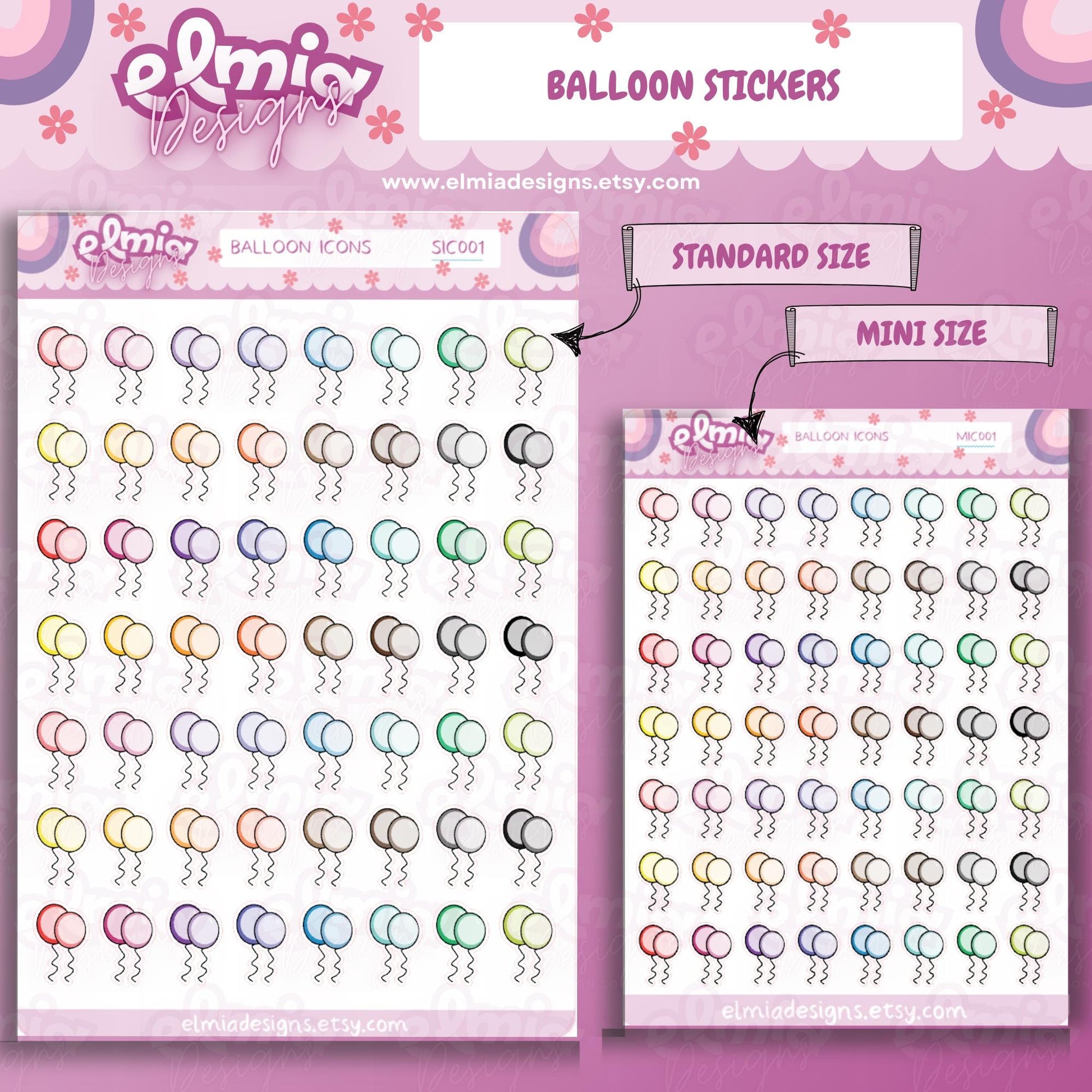 56 Cute Bright Balloon Planner Stickers | Birthday | BUJO | Planning | Journaling | Celebration | Mini Size | Standard Size | Custom