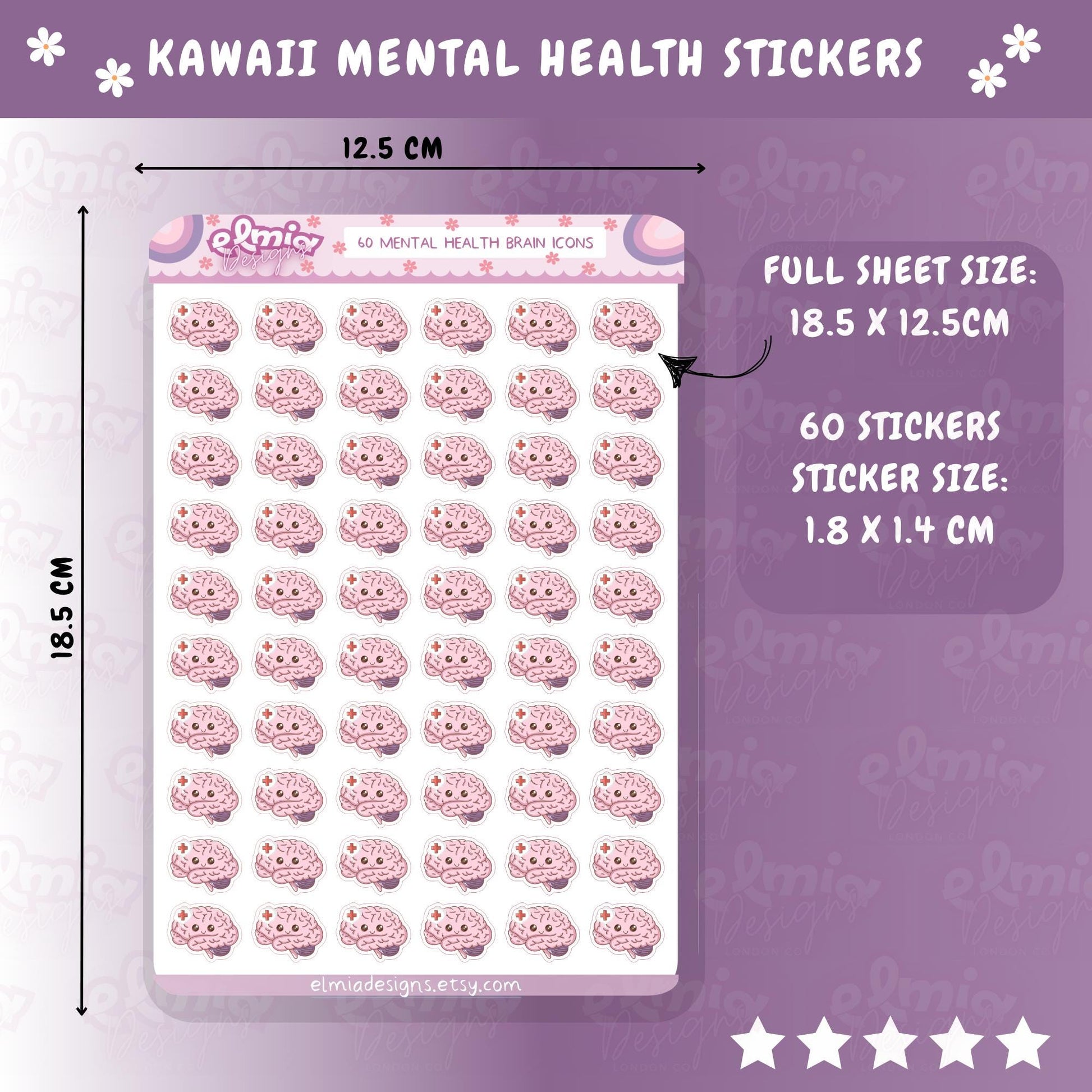 Our cute kawaii style mental health brain/mind stickers are perfect for tracking your mental health days, appointments, migraines and many more. Whatever your intent these are sized perfectly to fit in your planner, diary, journal, scrapbook or calendar. All stickers are printed with high quality ink onto a bright white vinyl stickers paper and kiss-cut making them ready to peel and stick straight away!