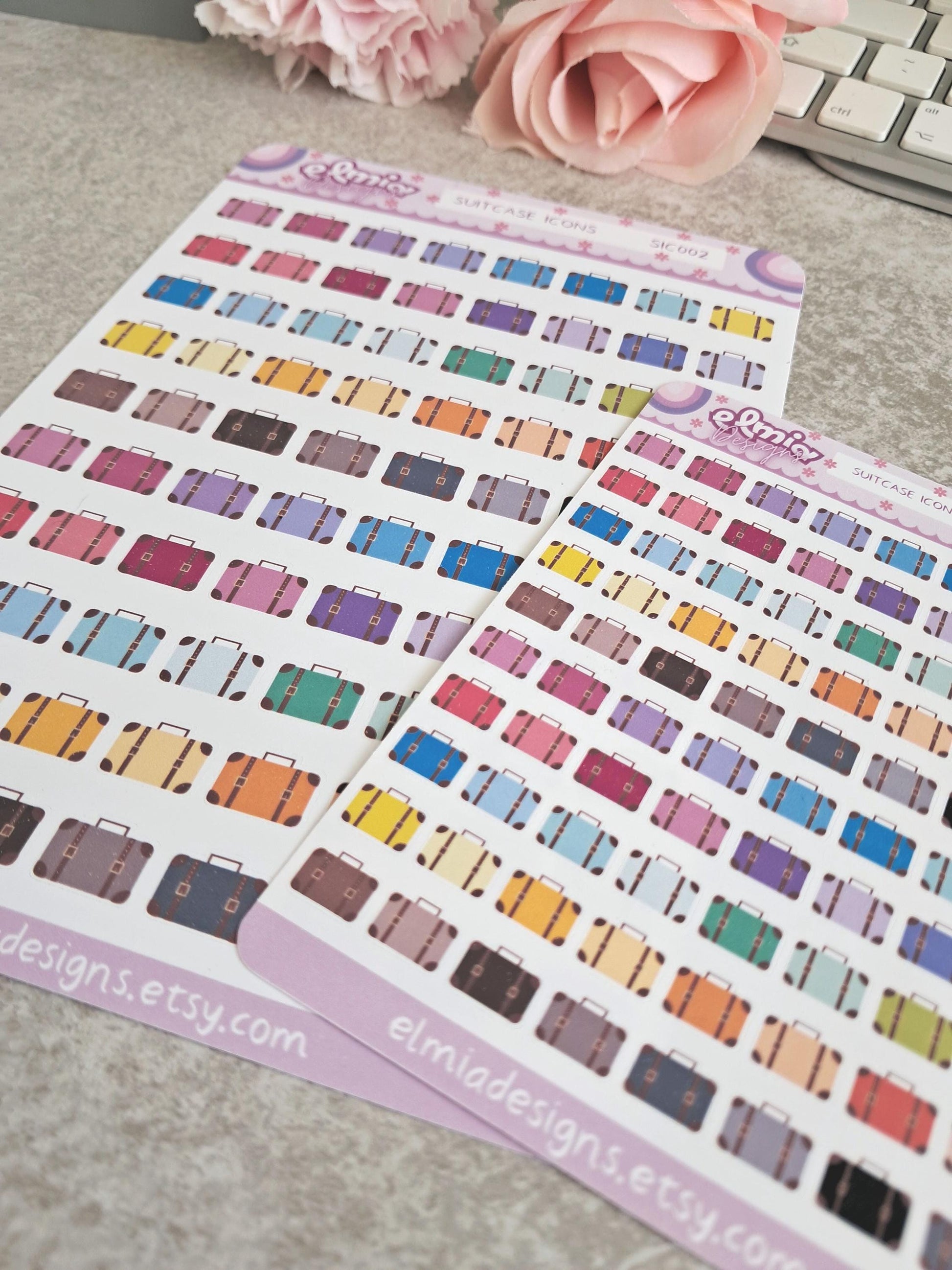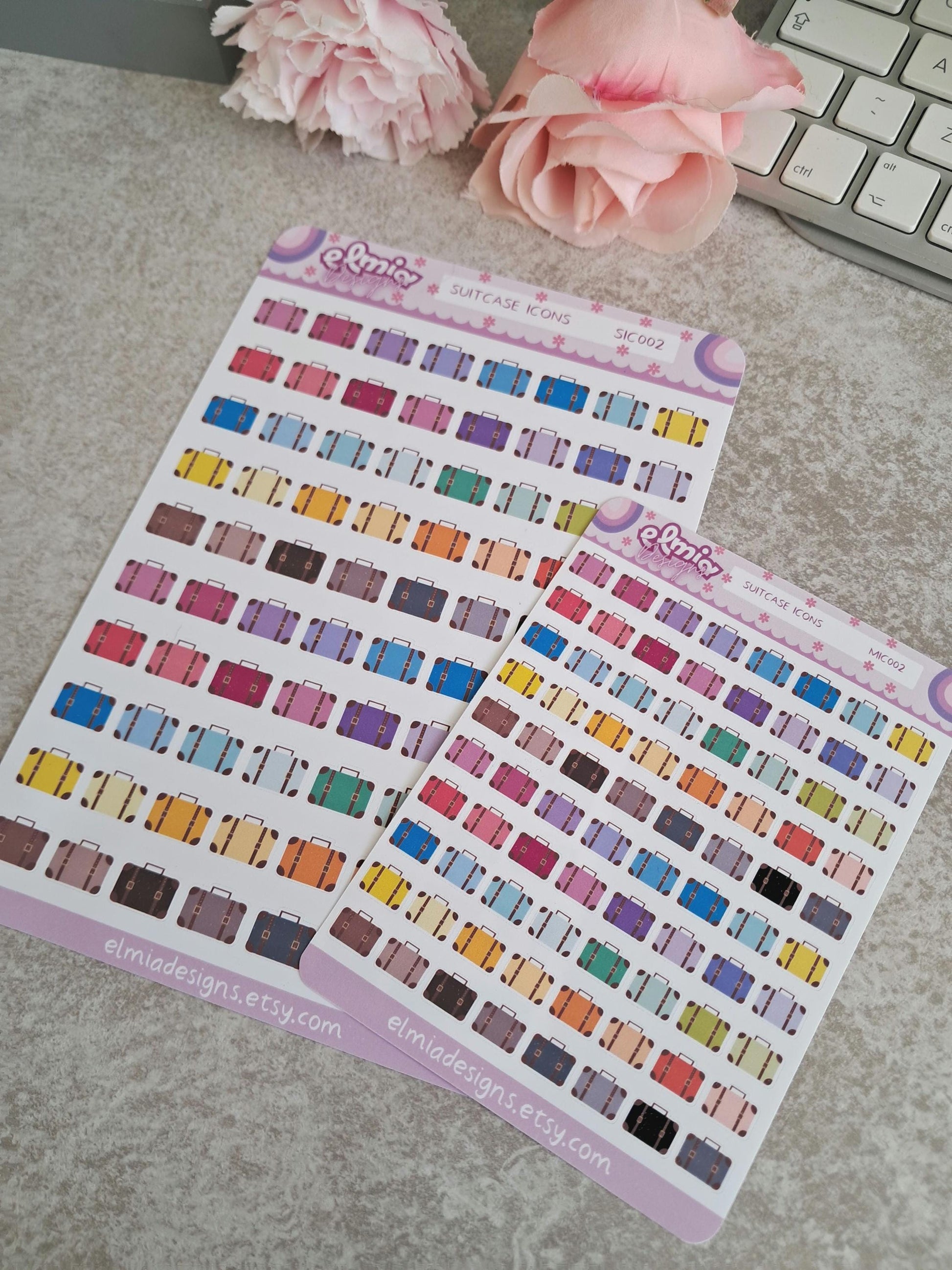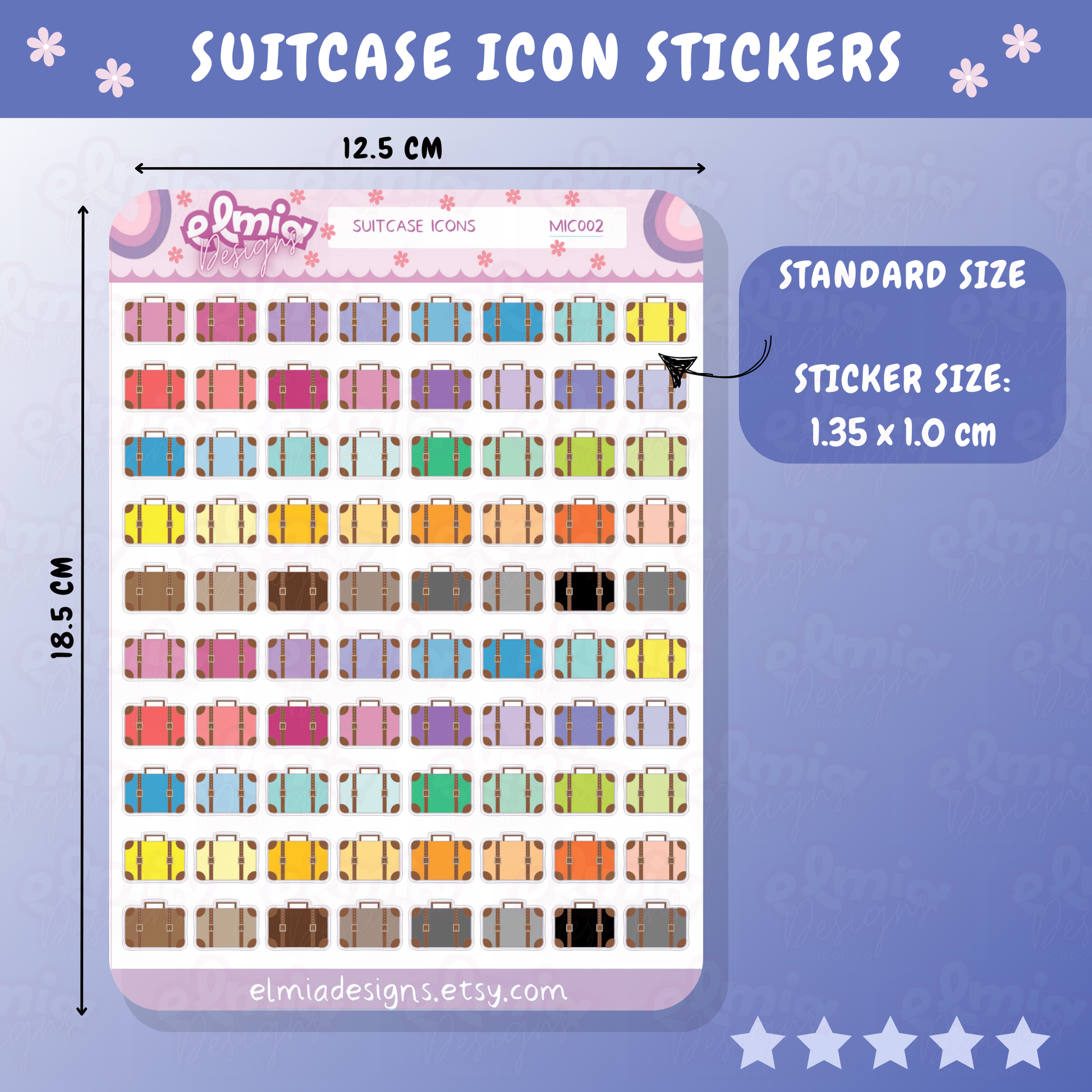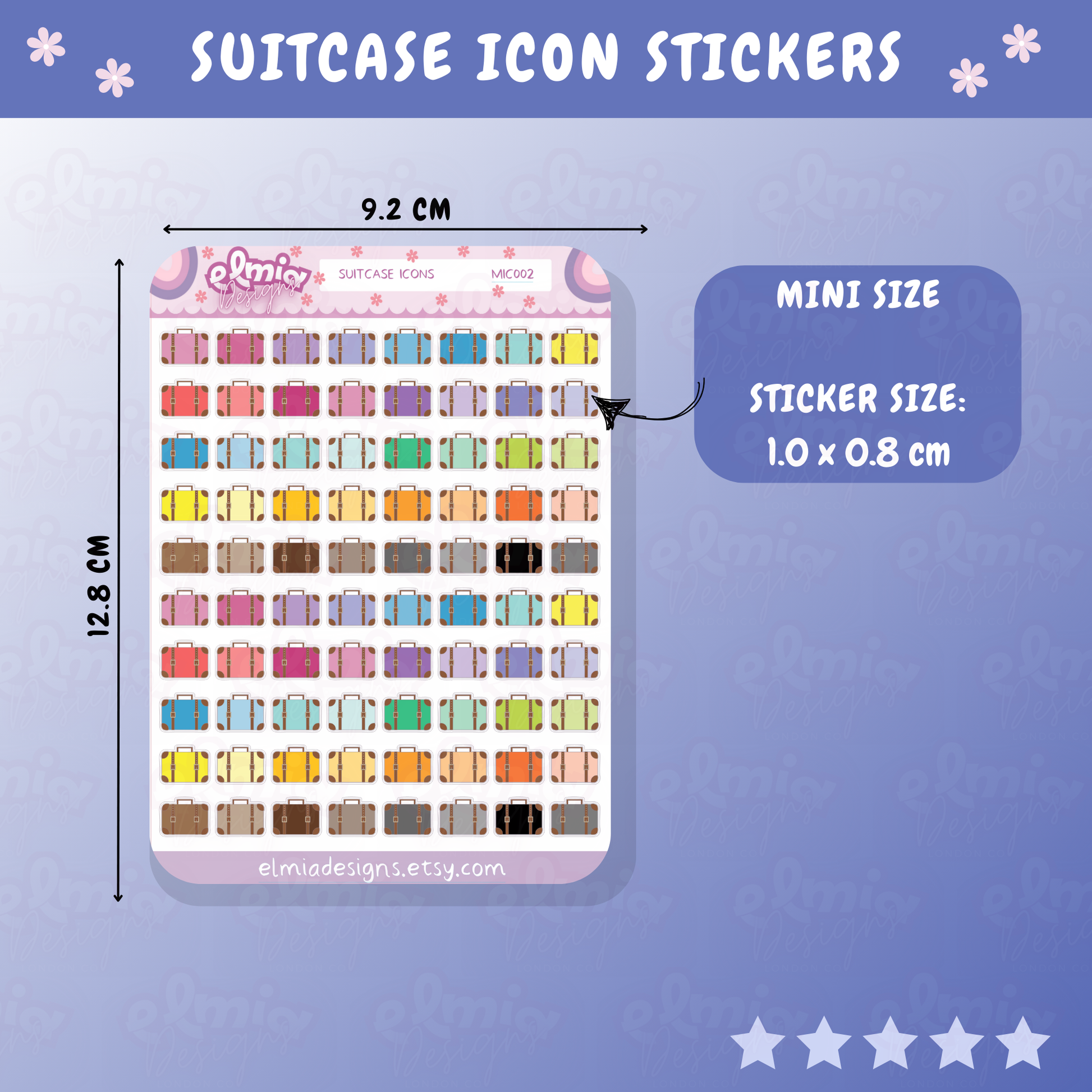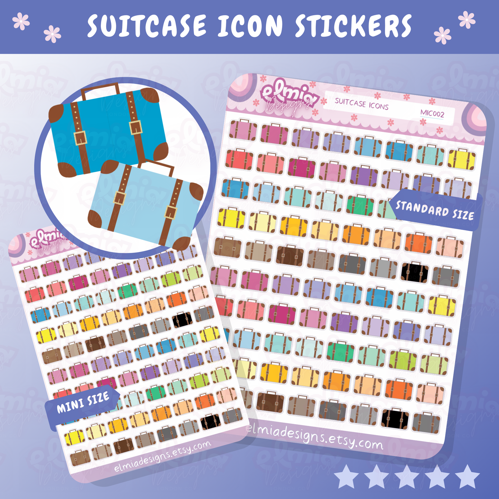 80 Cute Bright Suitcase or Briefcase Planner Stickers | Holiday | BUJO | Planning | Journaling | Work | Summer | Mini Size | Travel