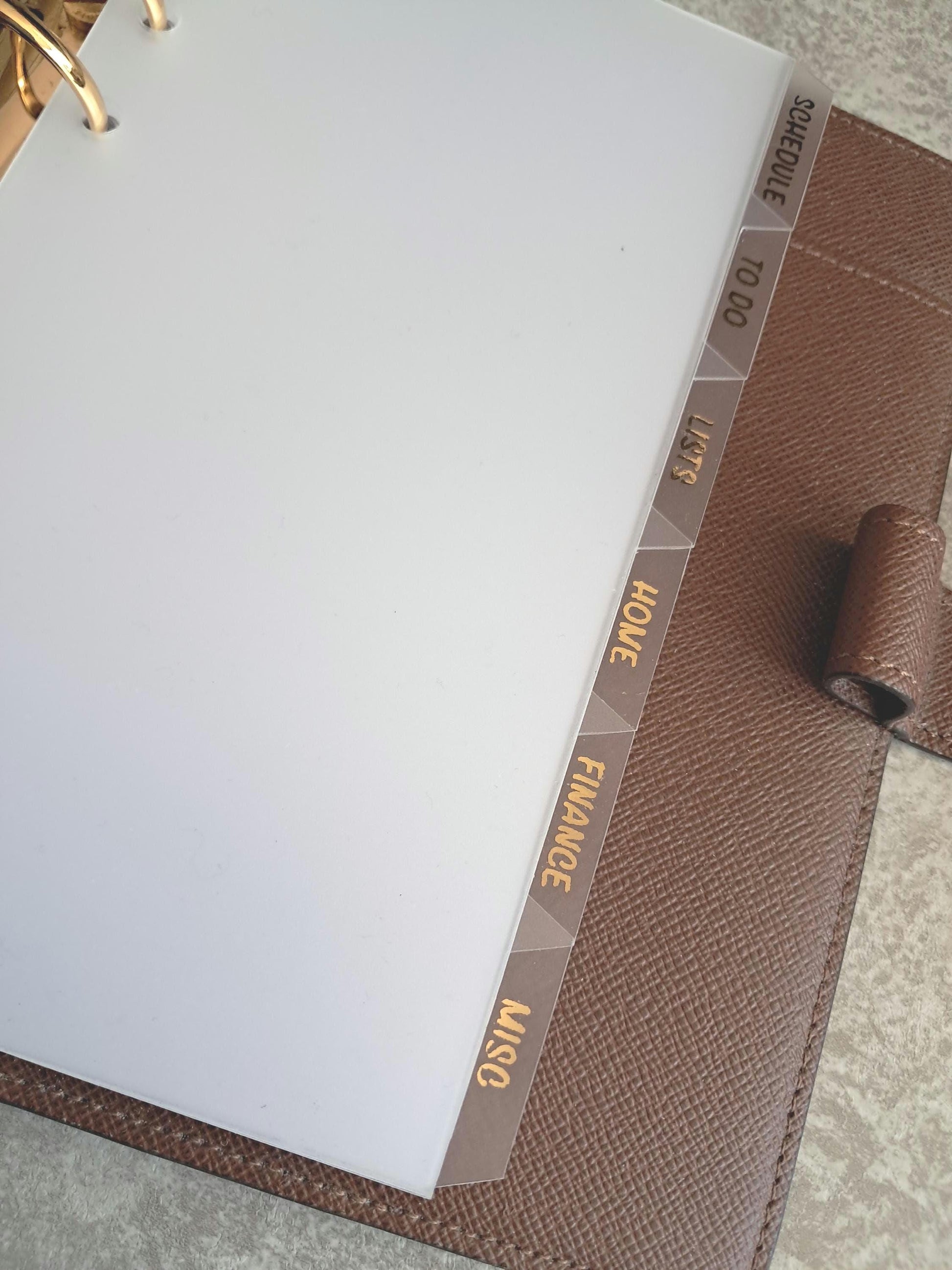 Custom Foiled Side Top Bottom Tab Dividers | BUJO | Planner Insert | Plastic Divider | Personal | A5 | A6 | Pocket | B6 | Journal | Planning