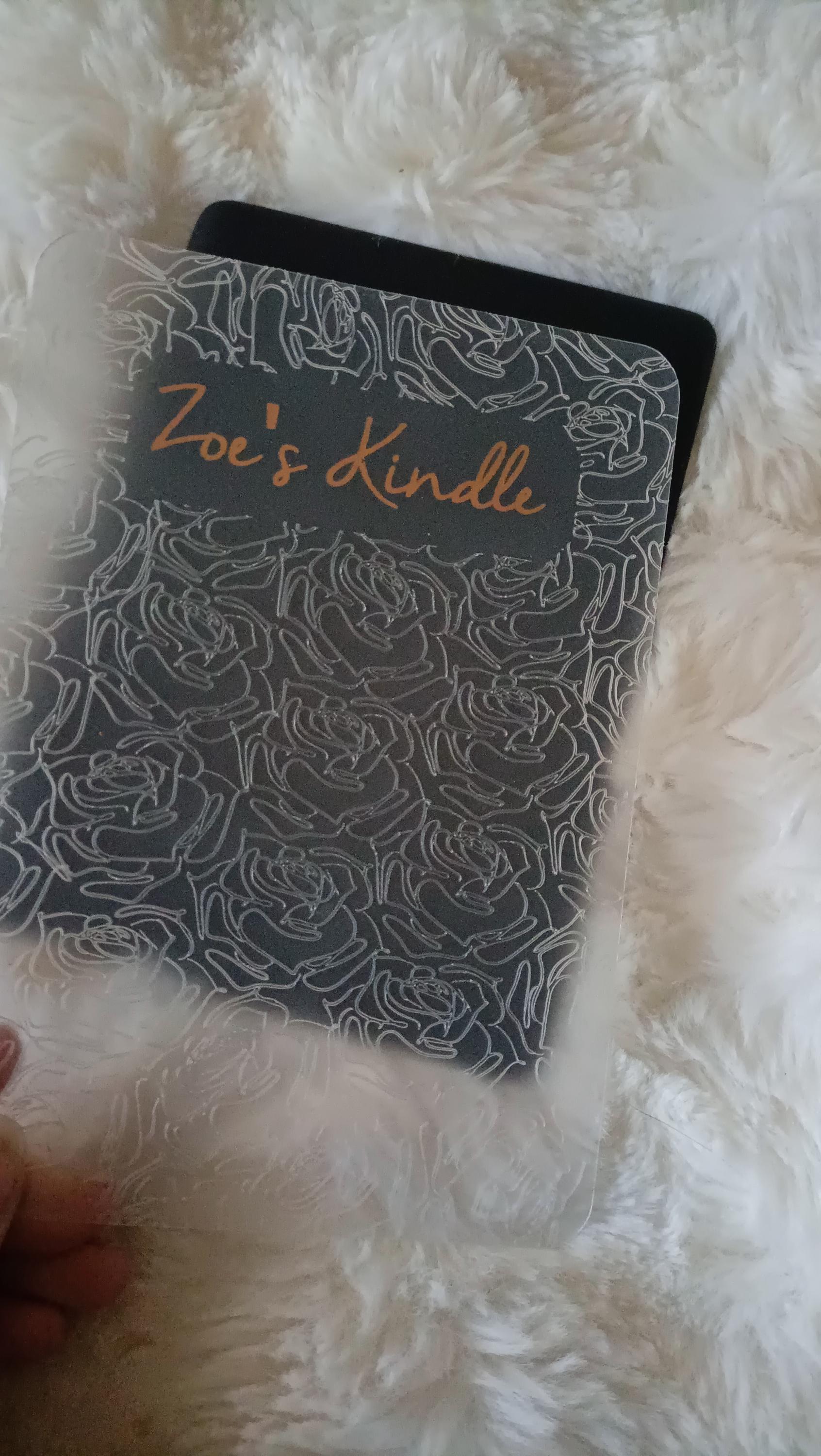 All you need is a clear case for your kindle then alternate the inserts as much as you wish or layer them together! (cases widely available on Amazon, message for links if needed) All waterproof, tare-proof. Frosted allows you to also layer with colours and patterns behind your insert to add more style.