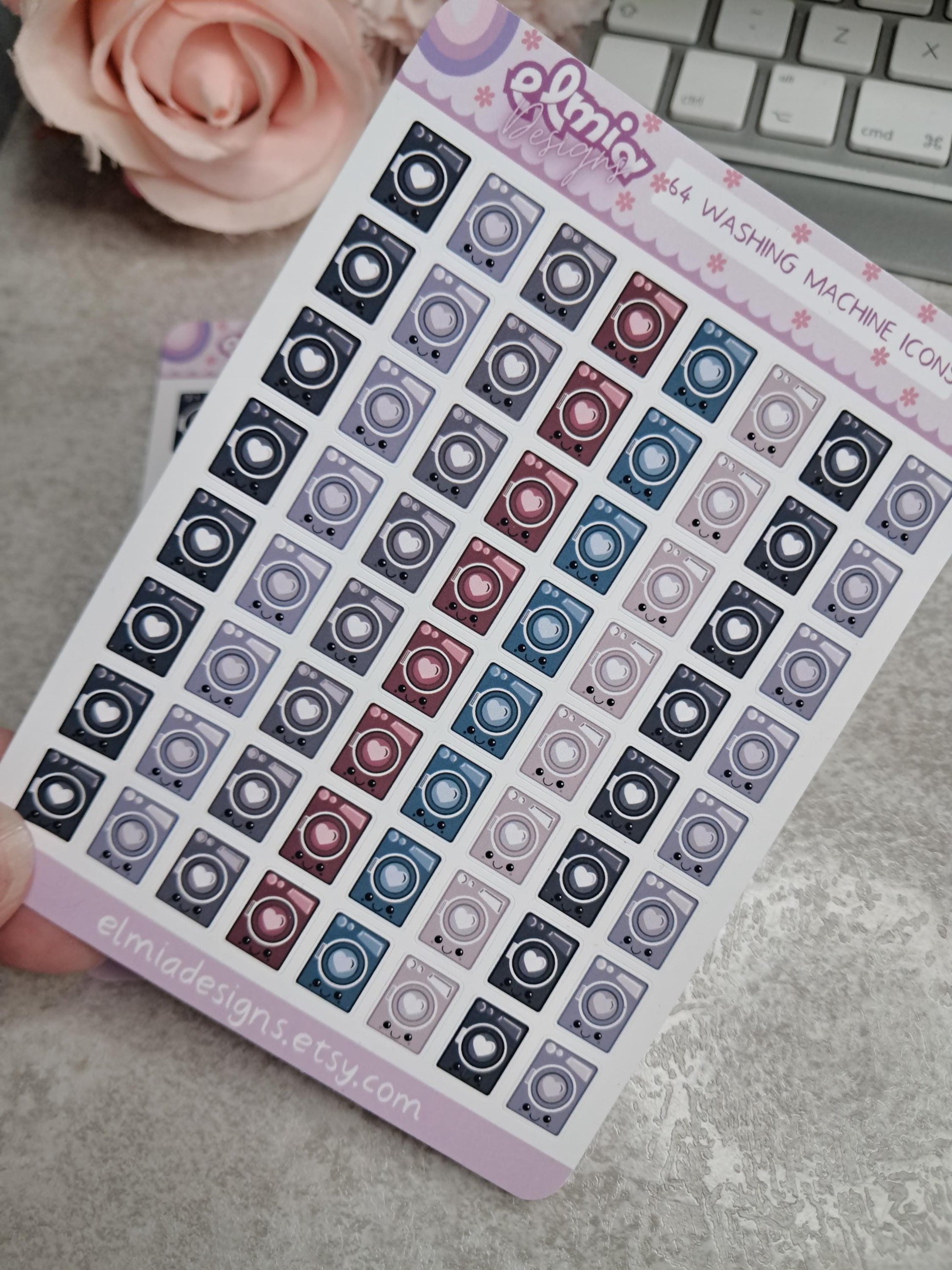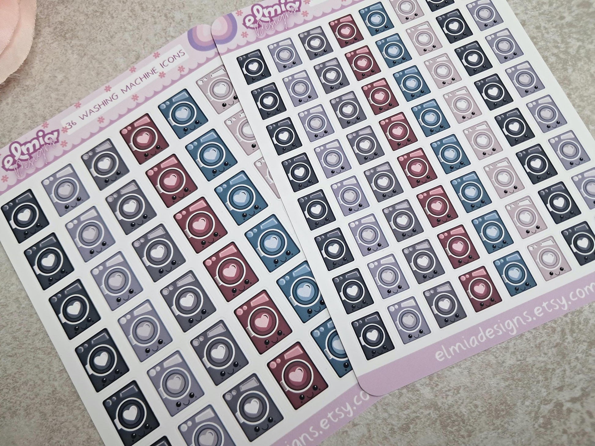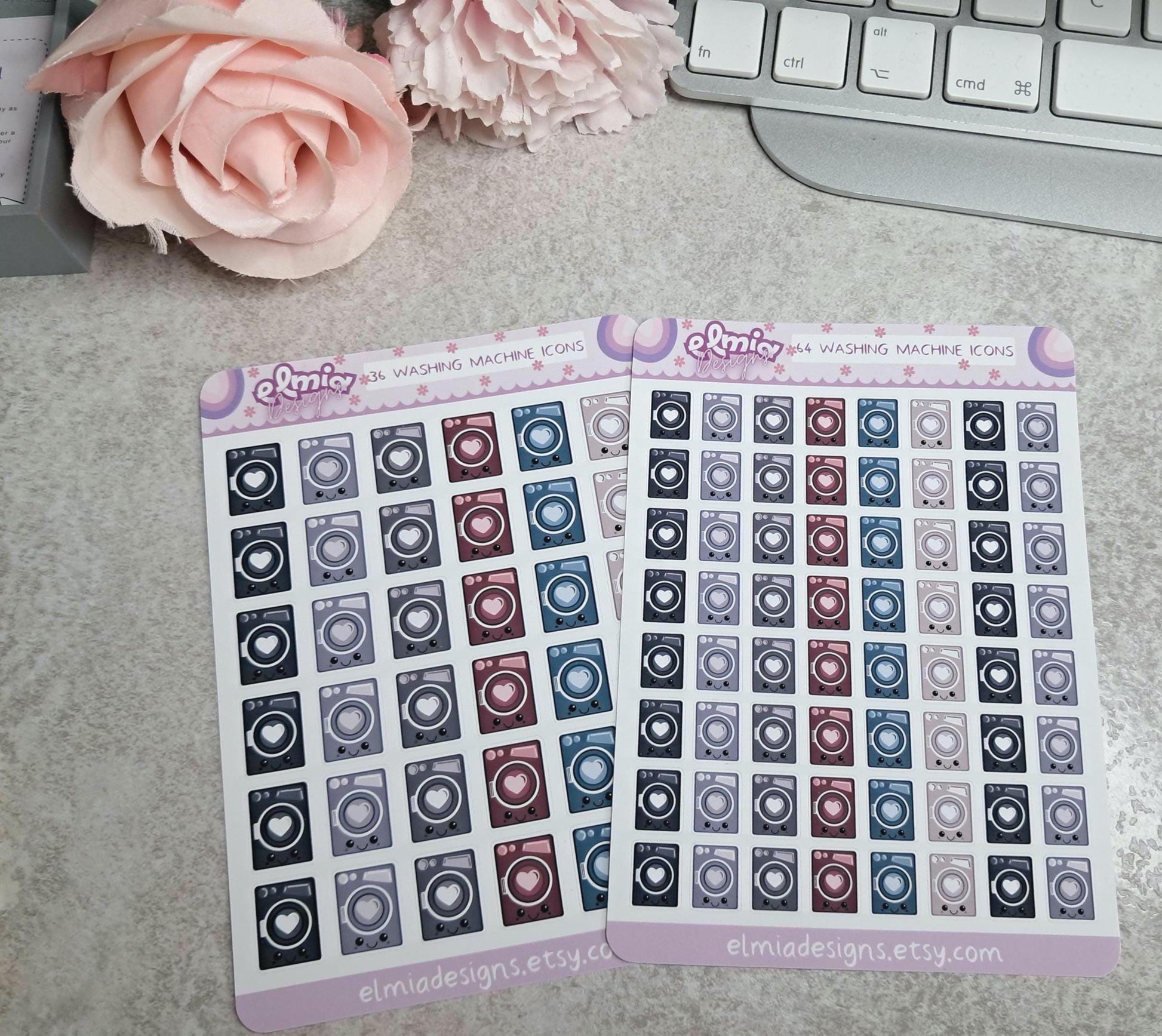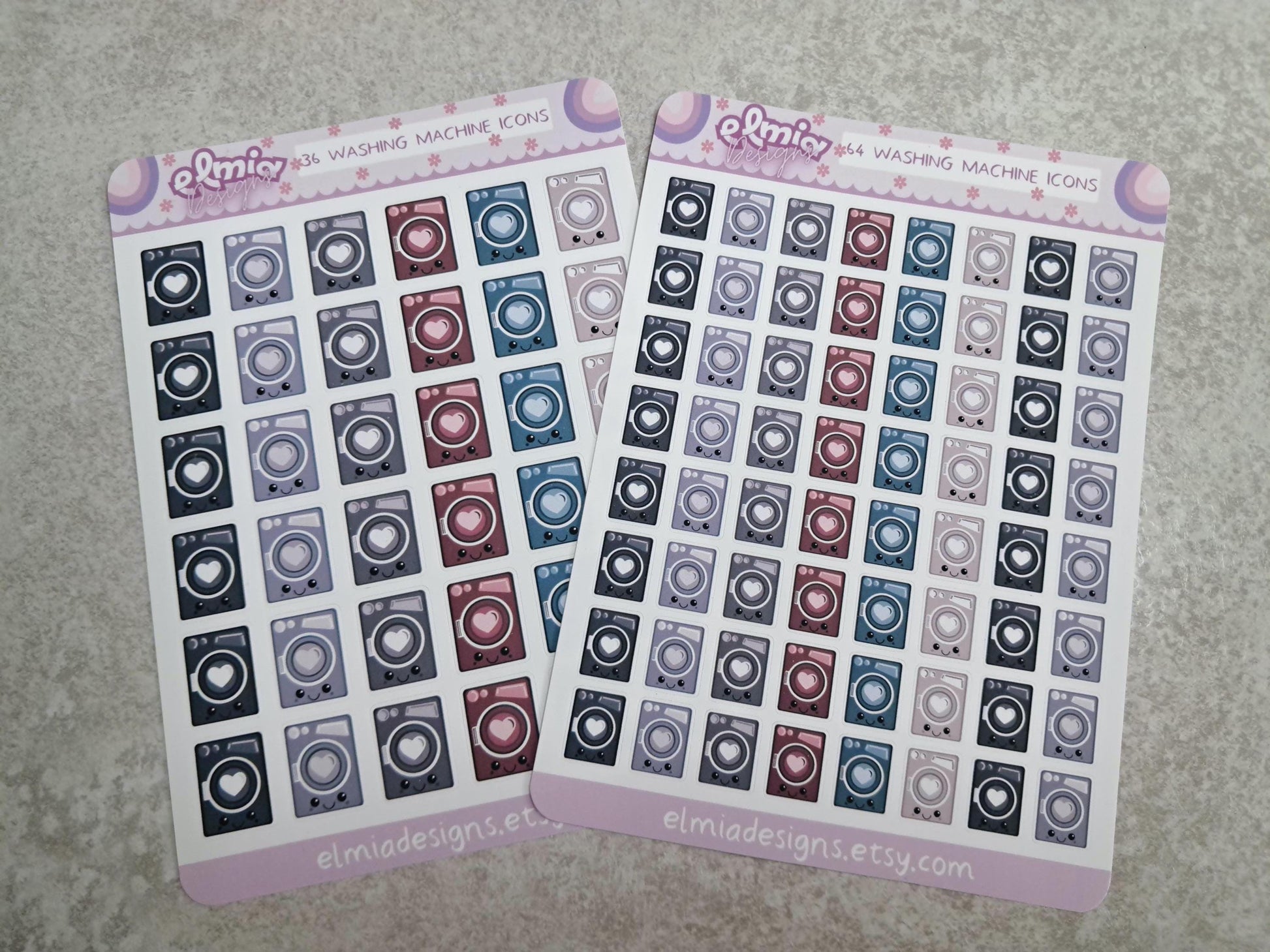 Cute Bright Neutral Washing Machine | Chores | Tumble Dryer | Journaling | Calendar Planner Stickers | BUJO | Planning | Kawaii Anime