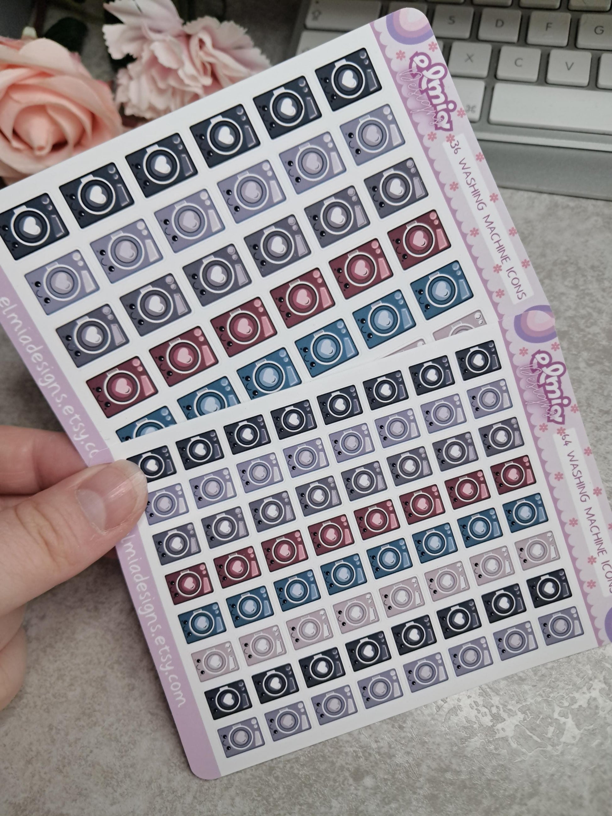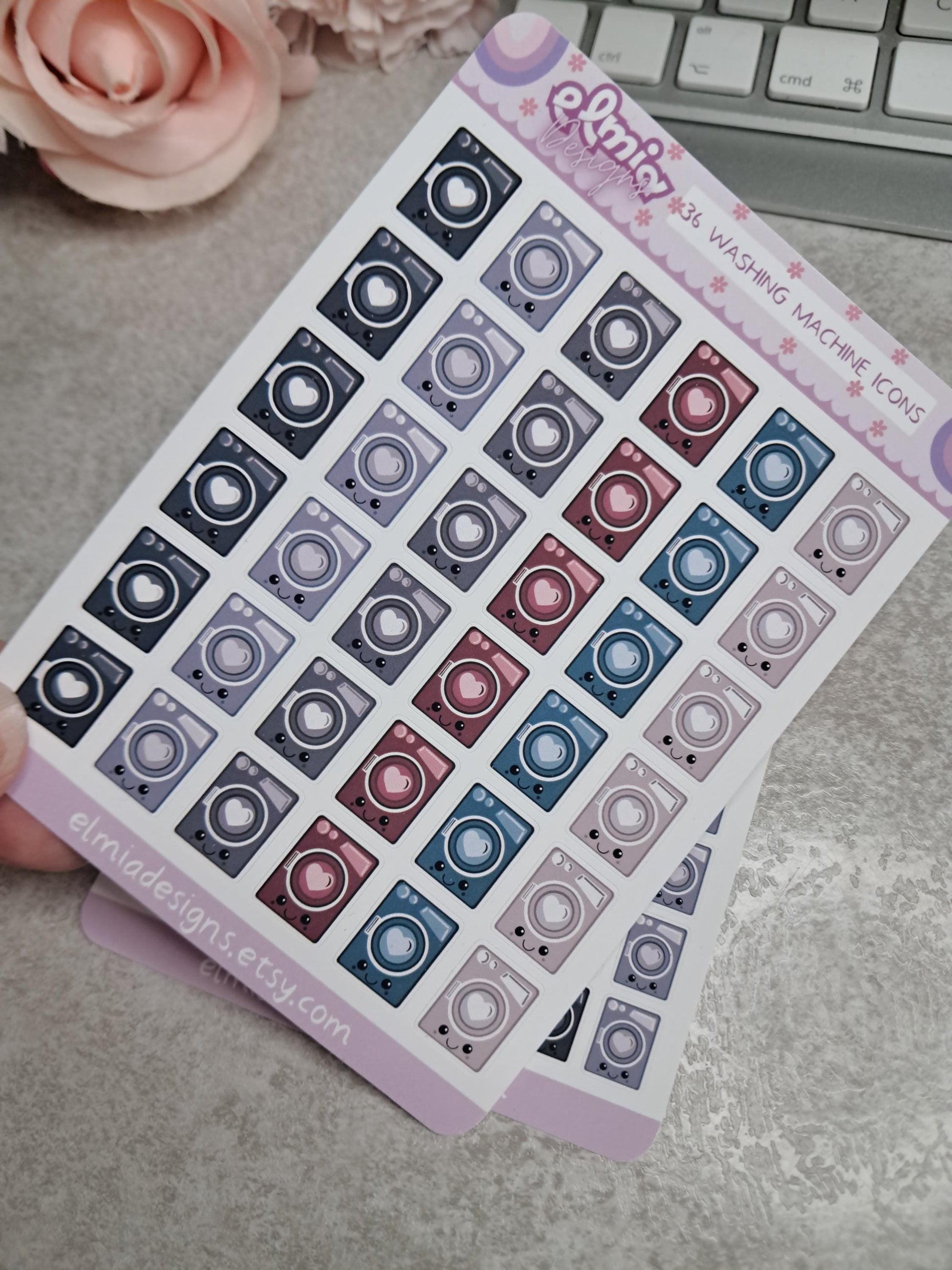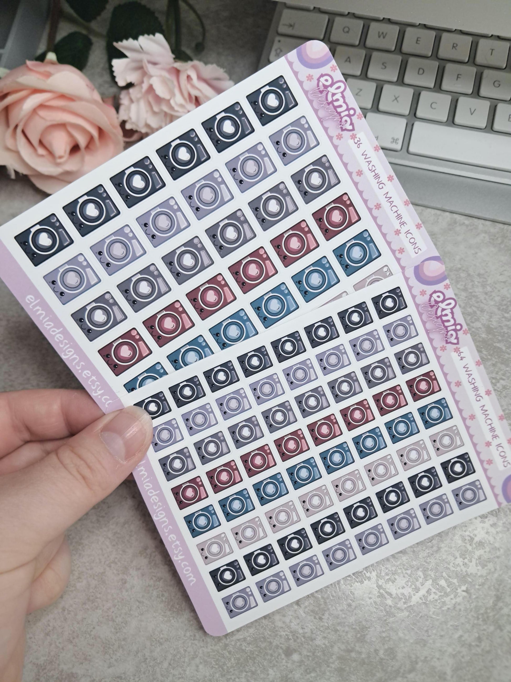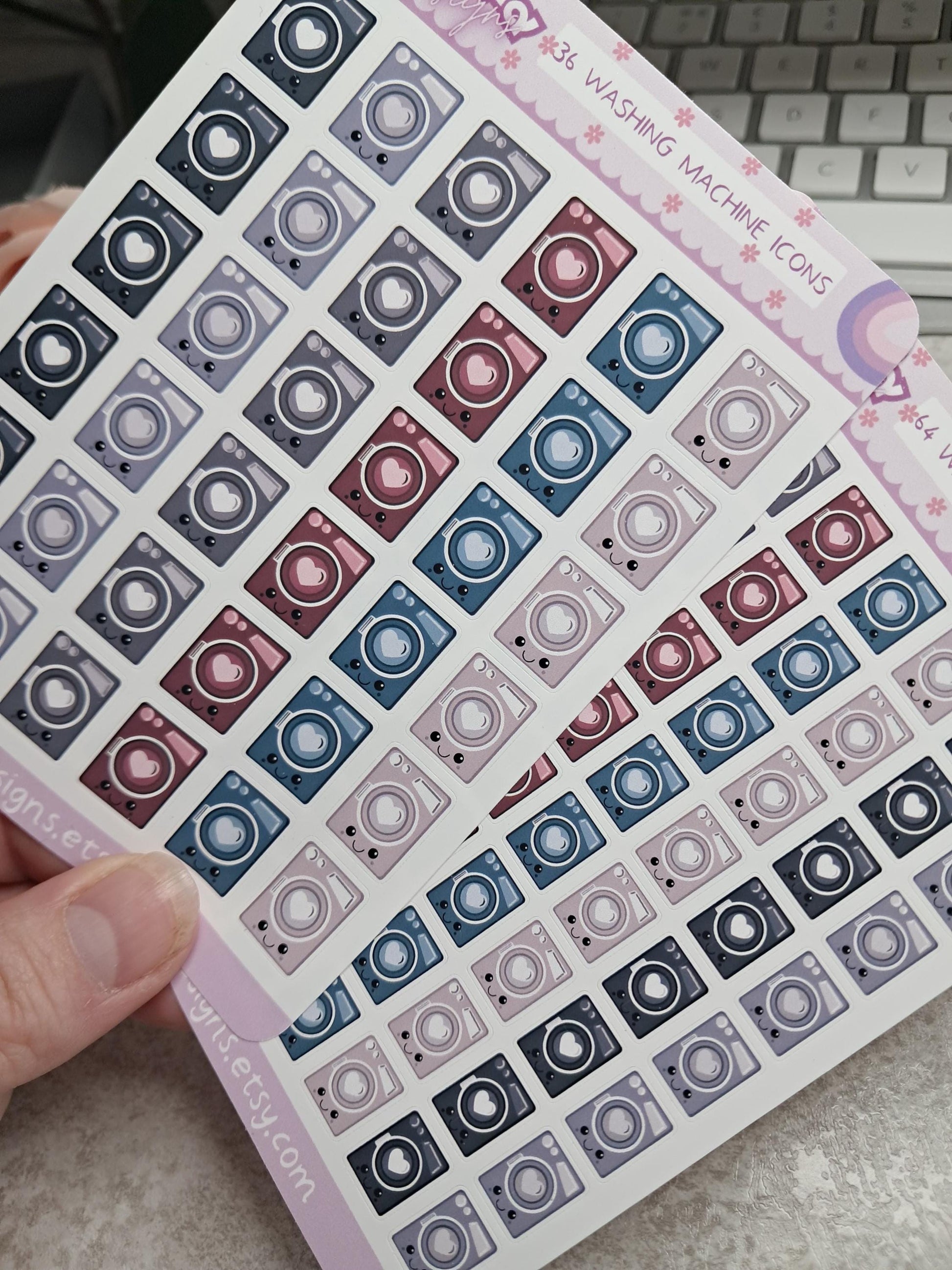 Cute Bright Neutral Washing Machine | Chores | Tumble Dryer | Journaling | Calendar Planner Stickers | BUJO | Planning | Kawaii Anime