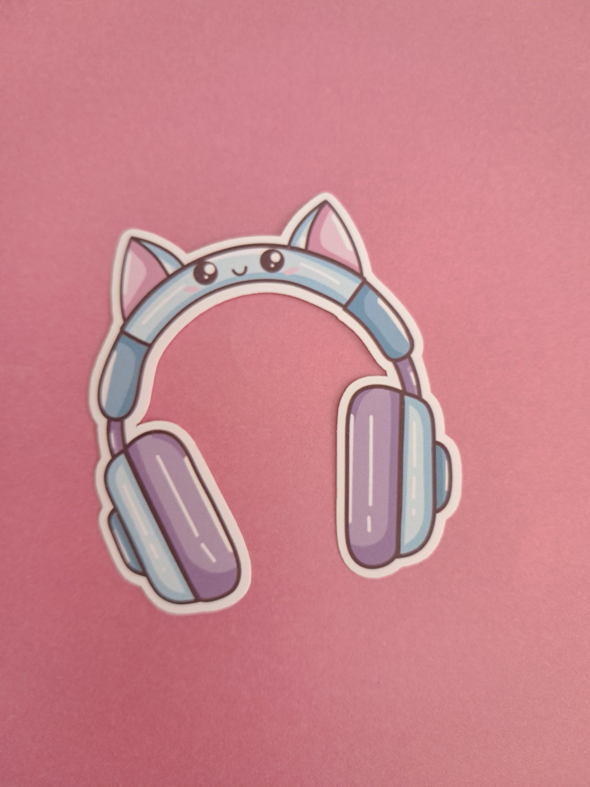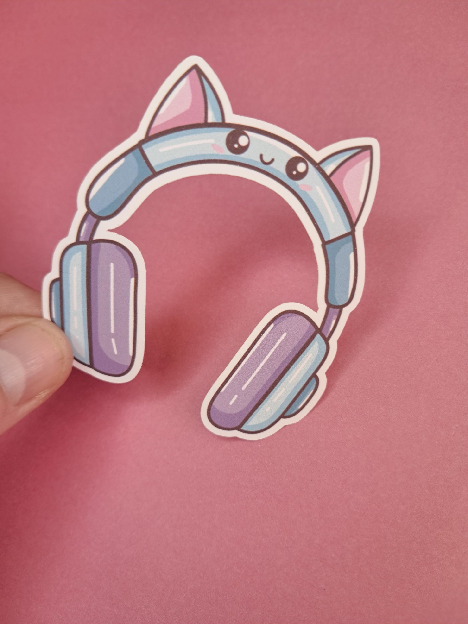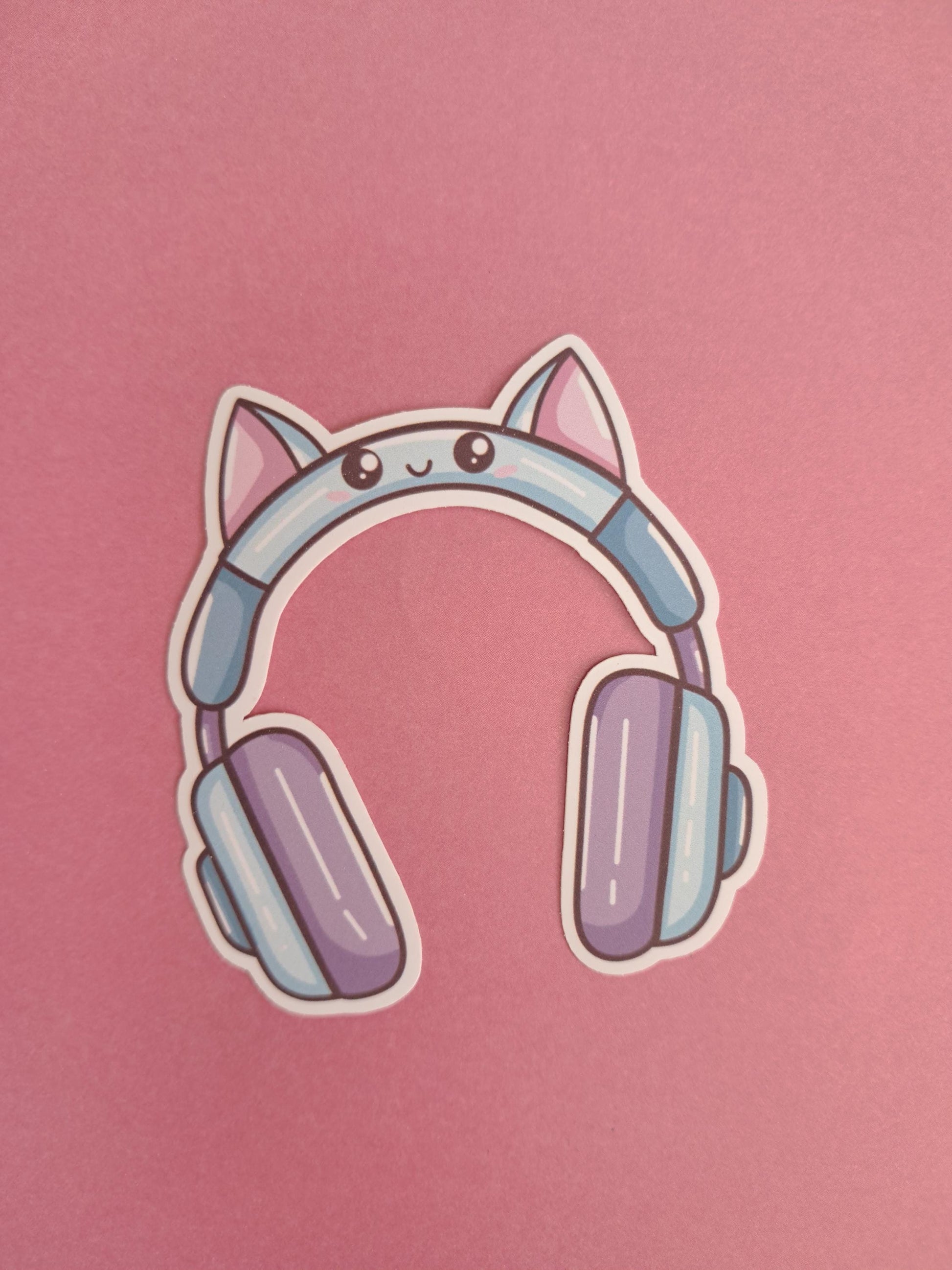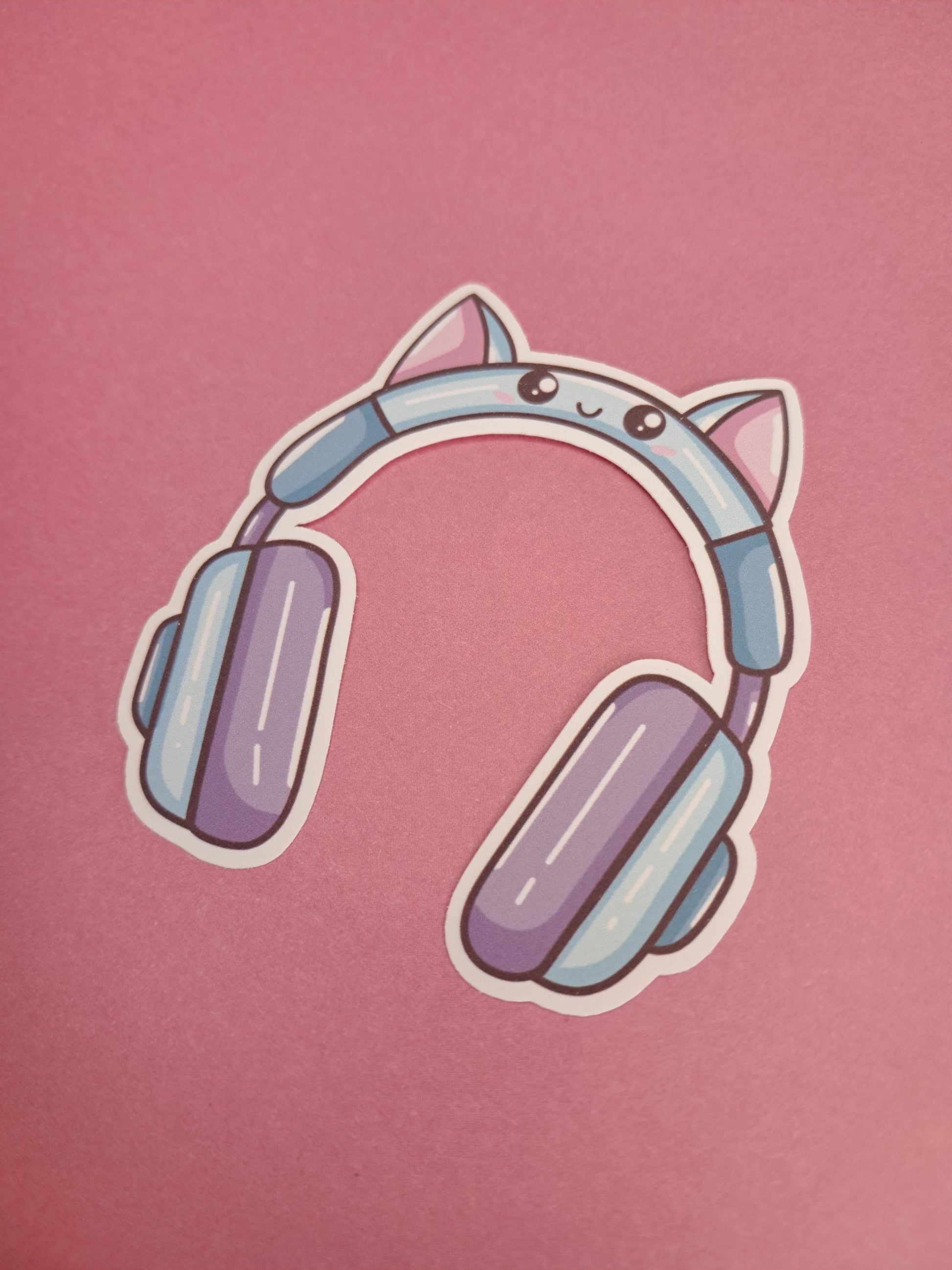 Cute kawaii cat gamer headphones audiobook Sticker Die cut Decal planner vinyl sticker | Kindle | Laptop | Book | Water Bottle | Bookish