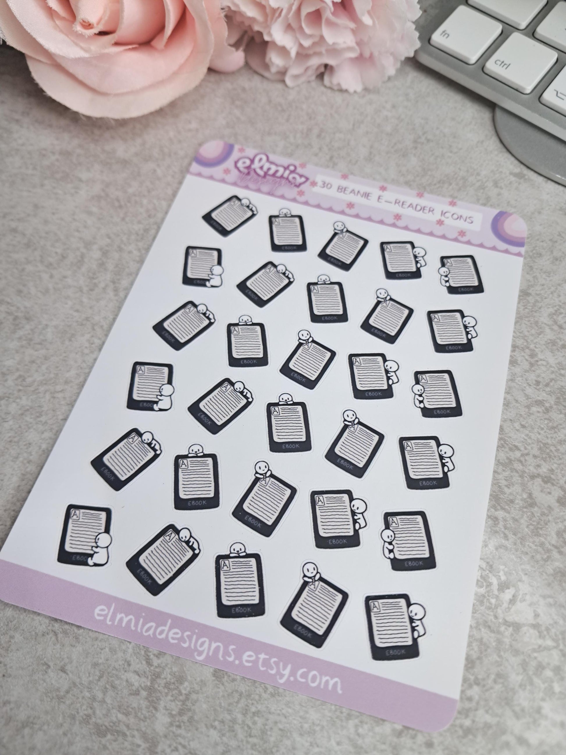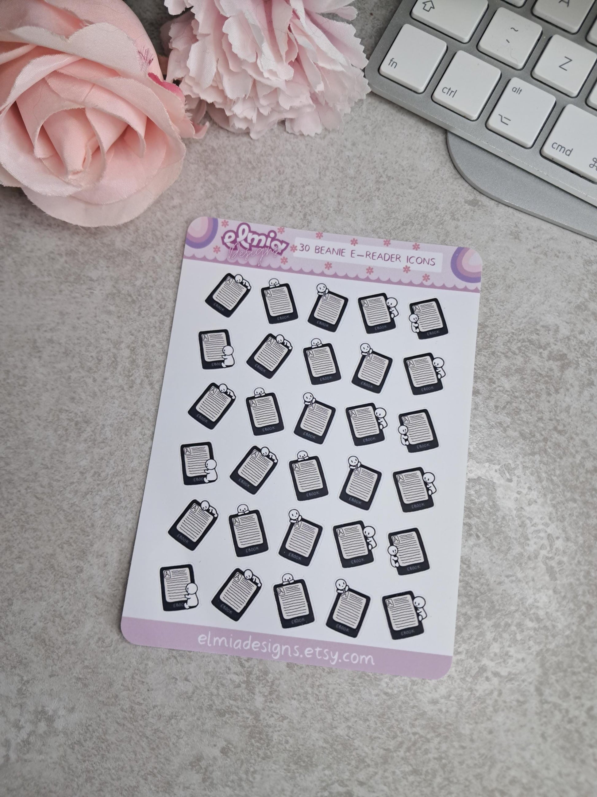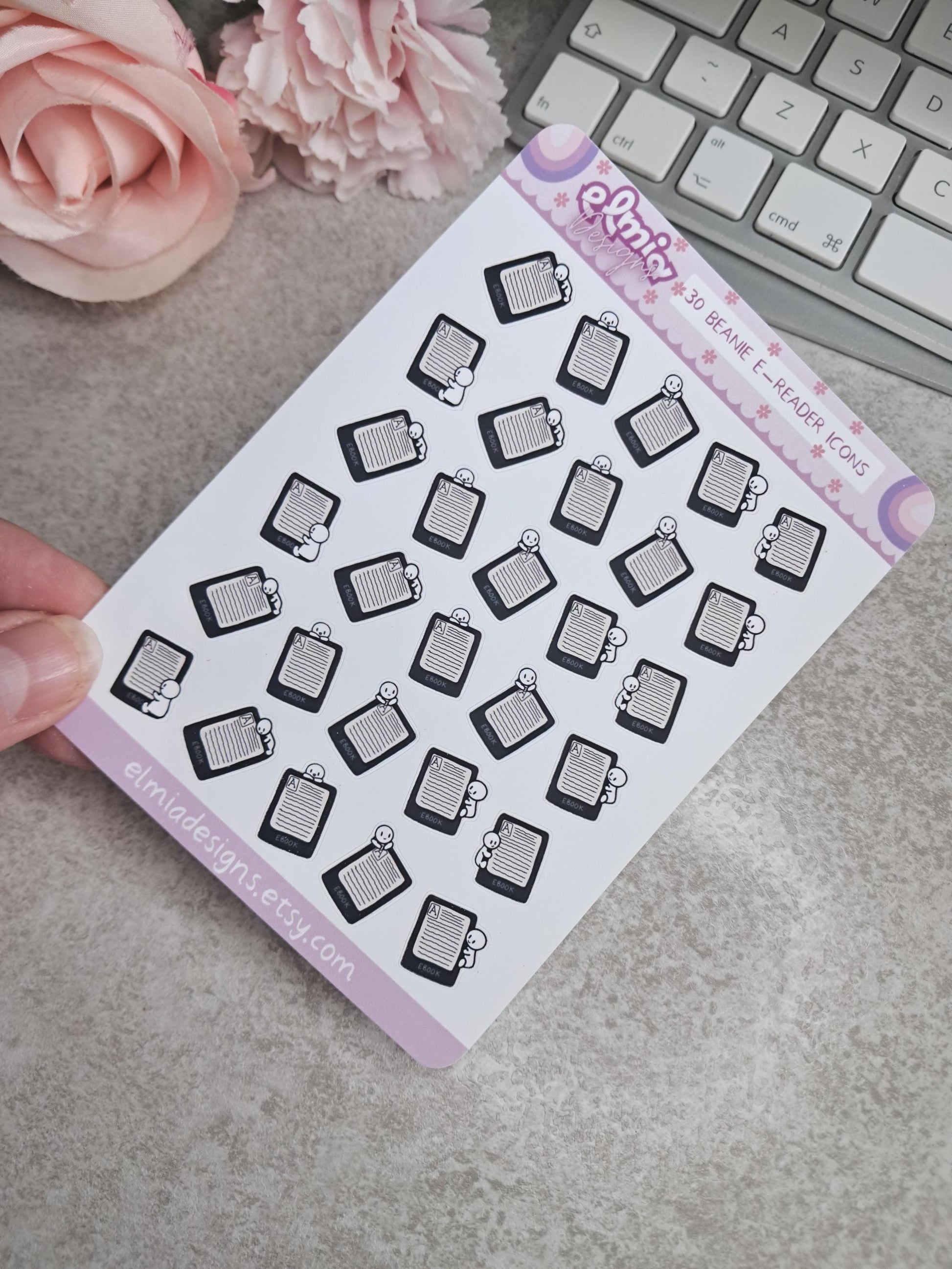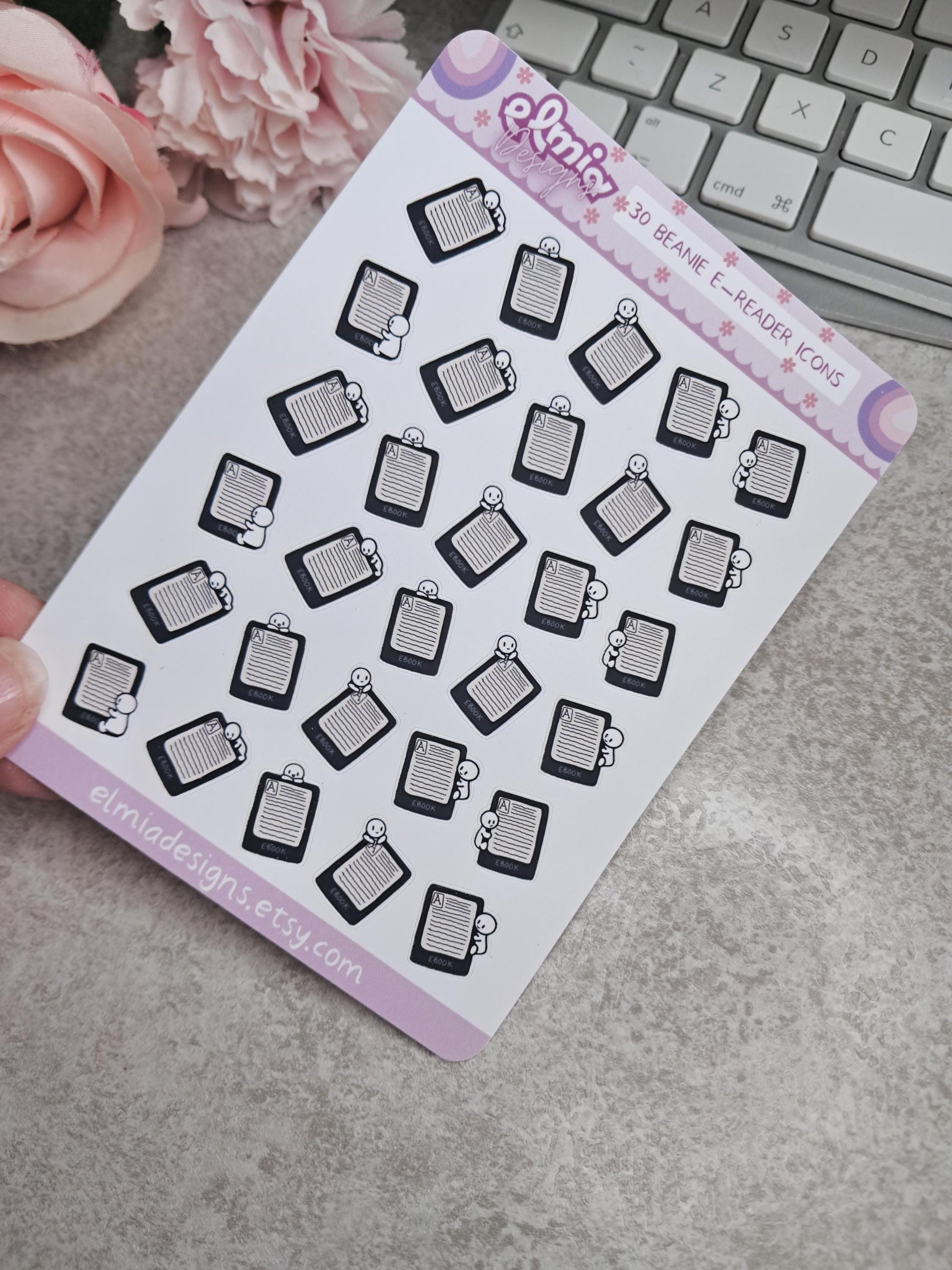 Cute Neutral Beanie Character E-reader Kindle Reading Journal Planner Sticker Journaling | Calendar | BUJO | Planning | Kawaii book tracker