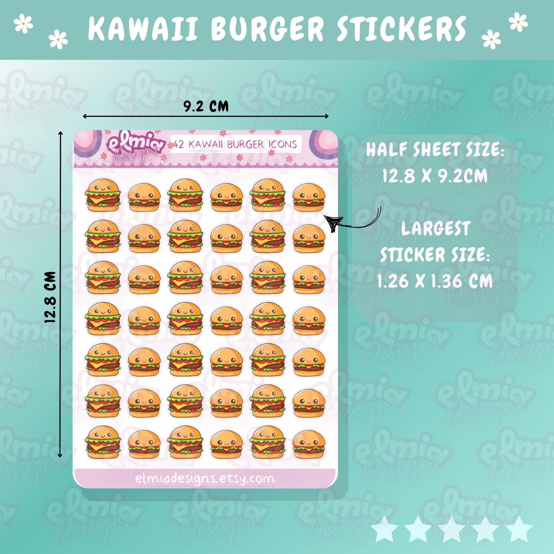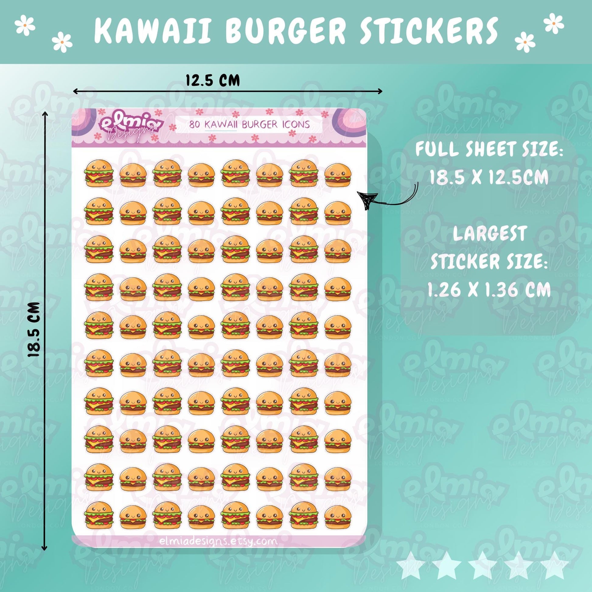Our cute kawaii style burger stickers are perfect for tracking those cheeky meals out at your favourite restaurant or your overall cheat days on the weekly basis. Whatever your intent these are sized perfectly to fit in your planner, diary, journal, scrapbook or calendar. All stickers are printed with high quality ink onto a bright white vinyl stickers paper and kiss-cut making them ready to peel and stick straight away!
