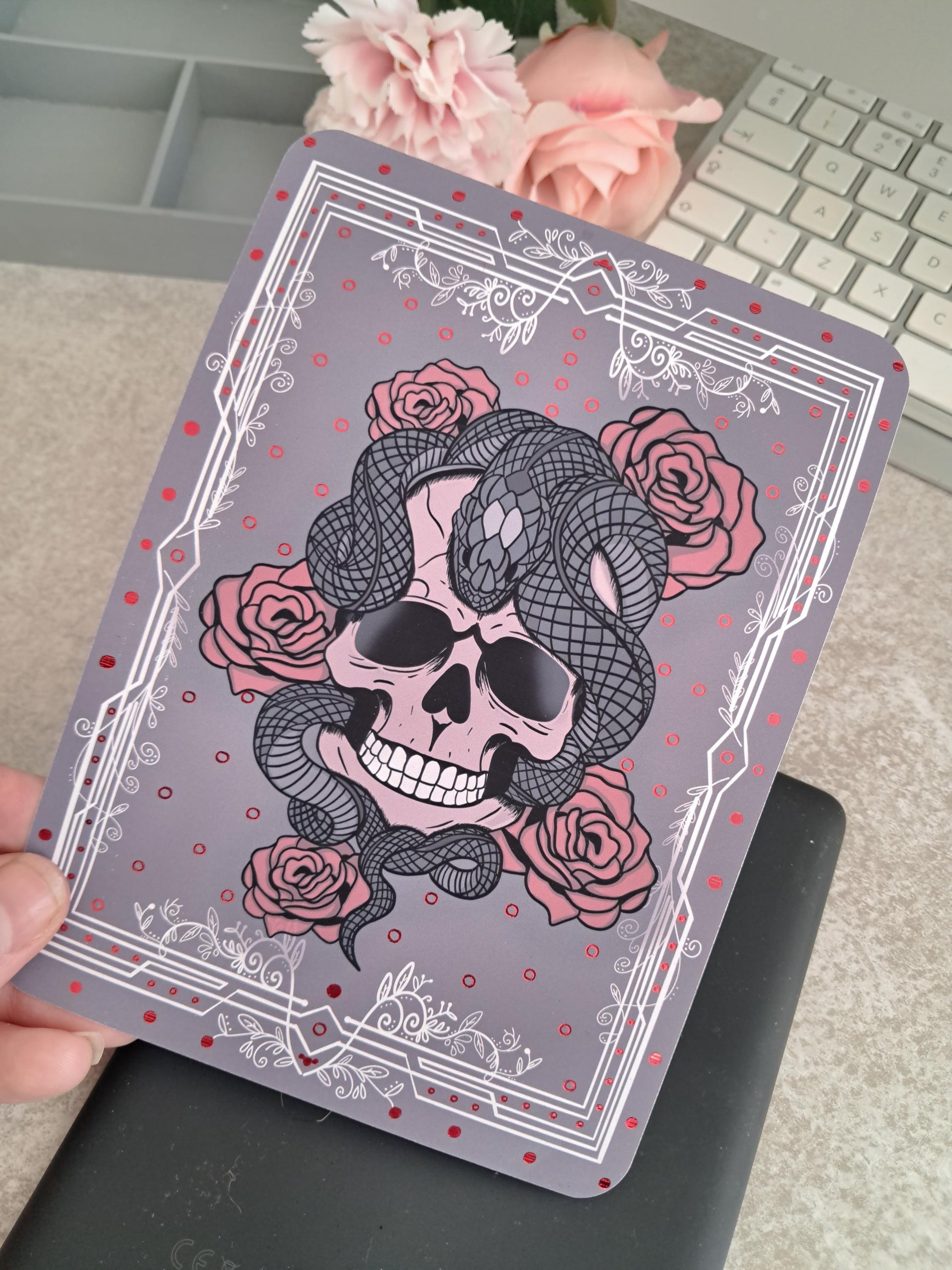 Printed Custom Kindle Case Insert | Reader Gifts | Bookish | Decor | Kindle Sticker | Booktok | gothic pirate skull roses snake viper death