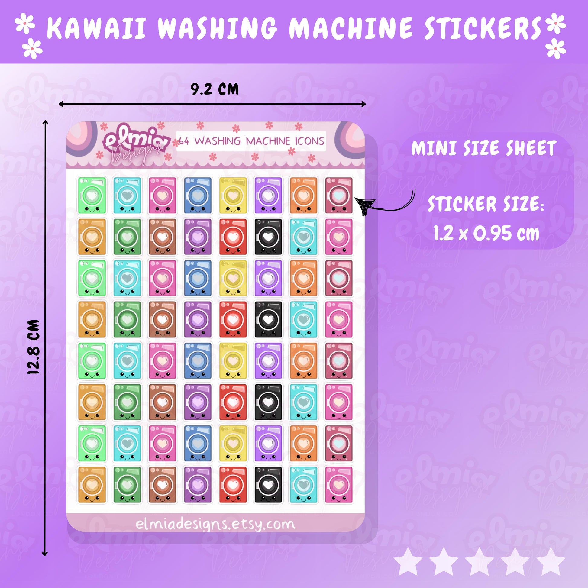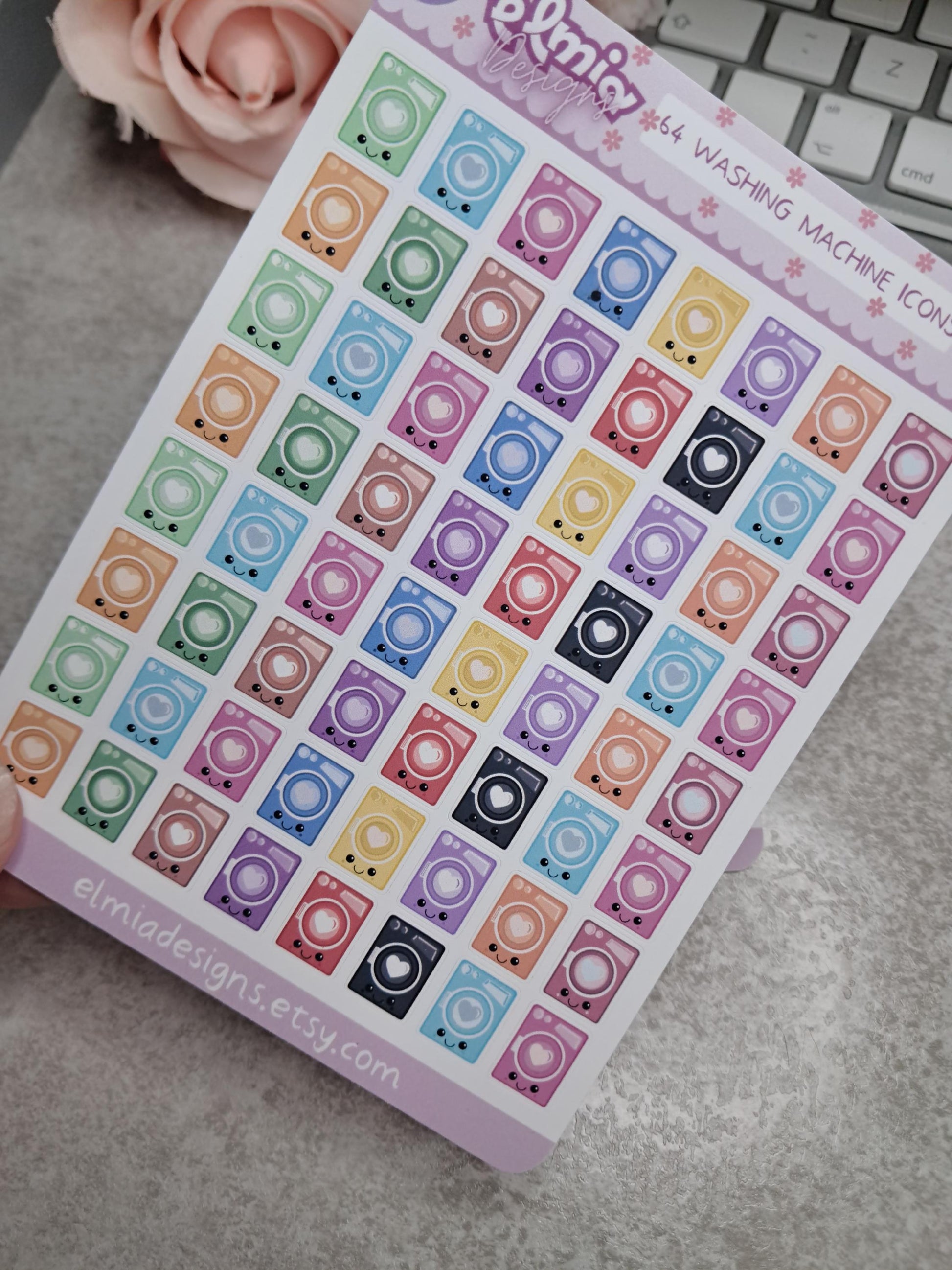 PRINTED Cute Bright Neutral Washing Laundry | Chores | Tumble Dryer | Journaling | Calendar Planner Stickers | BUJO | Planning Kawaii Anime
