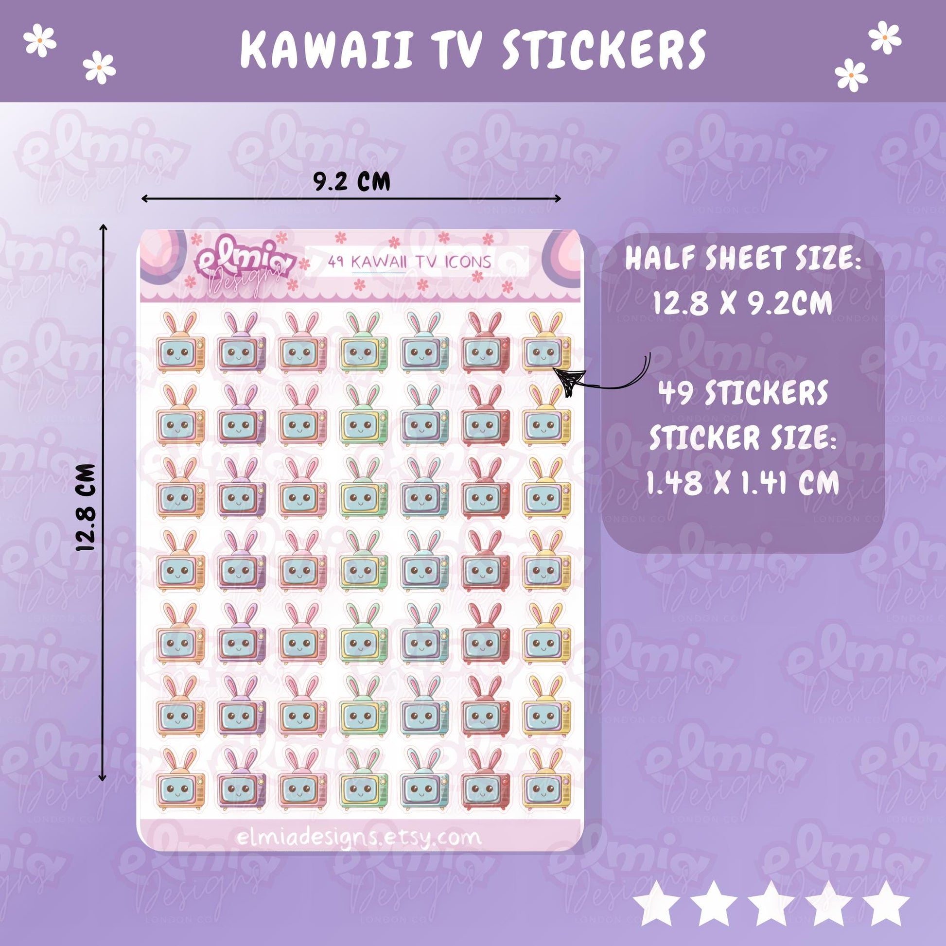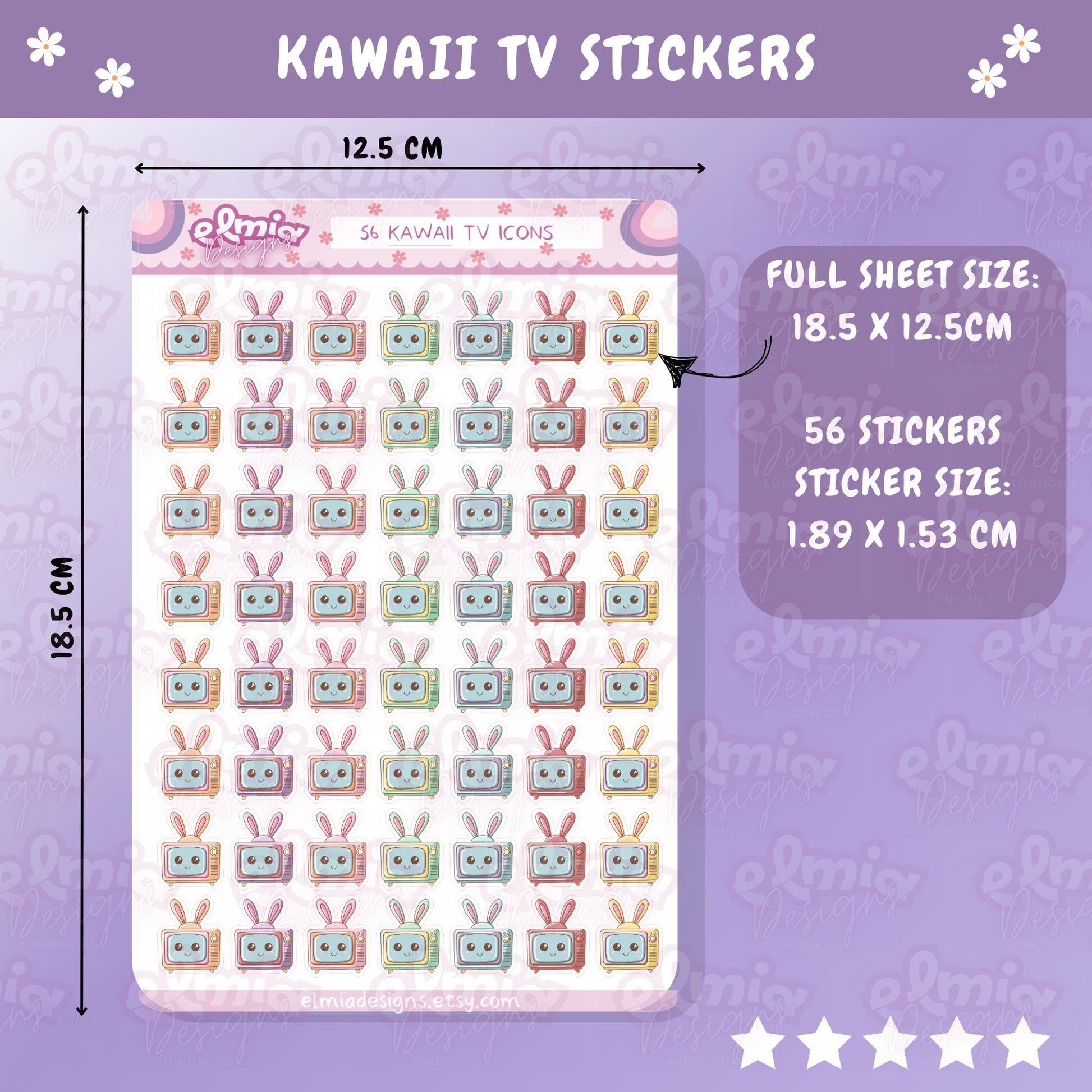 PRINTED Cute Kawaii tv tracker icon planner stickers | movie night | series | Journaling | Calendar Planner Sticker Sheet scrapbook Journal