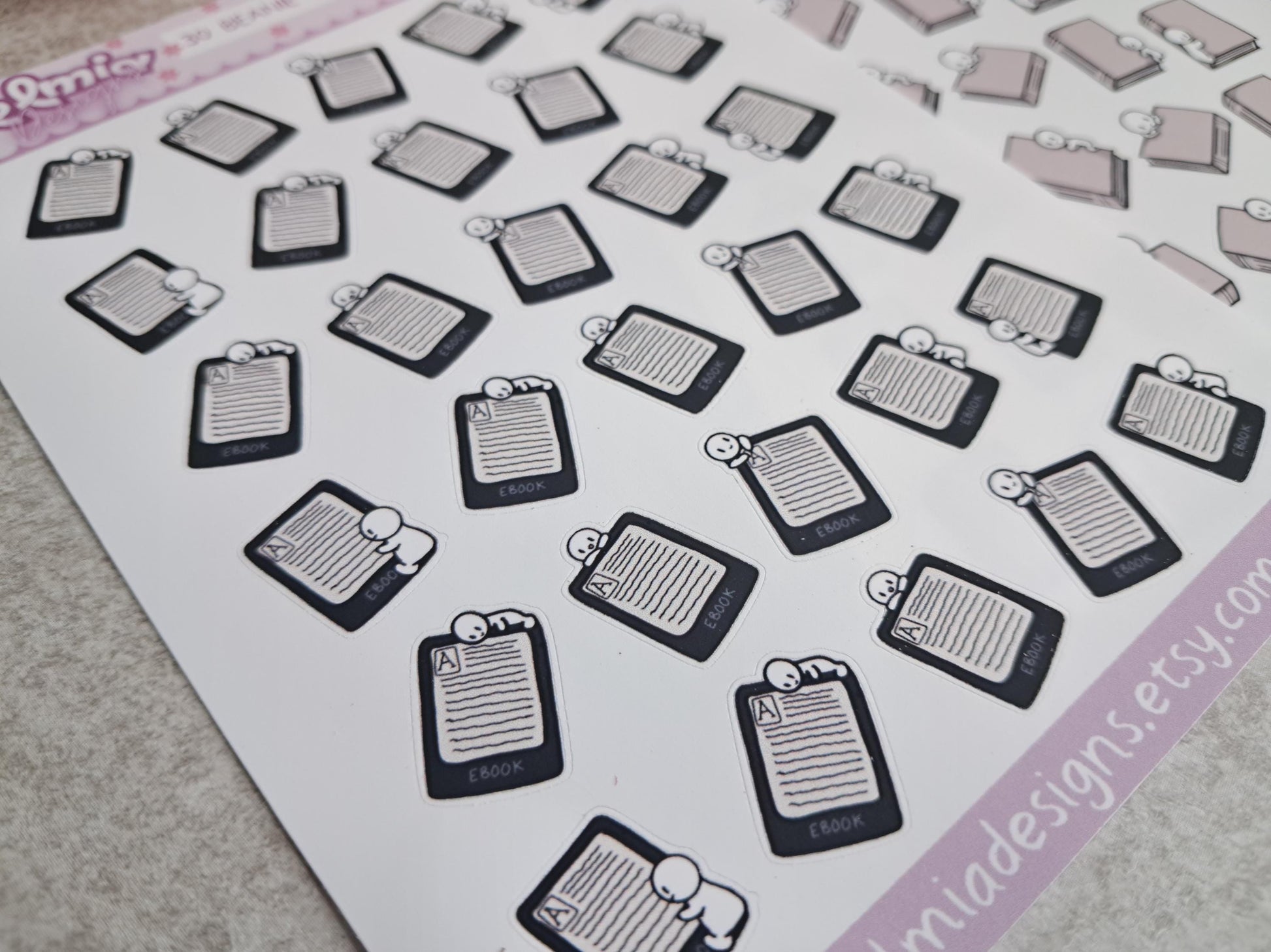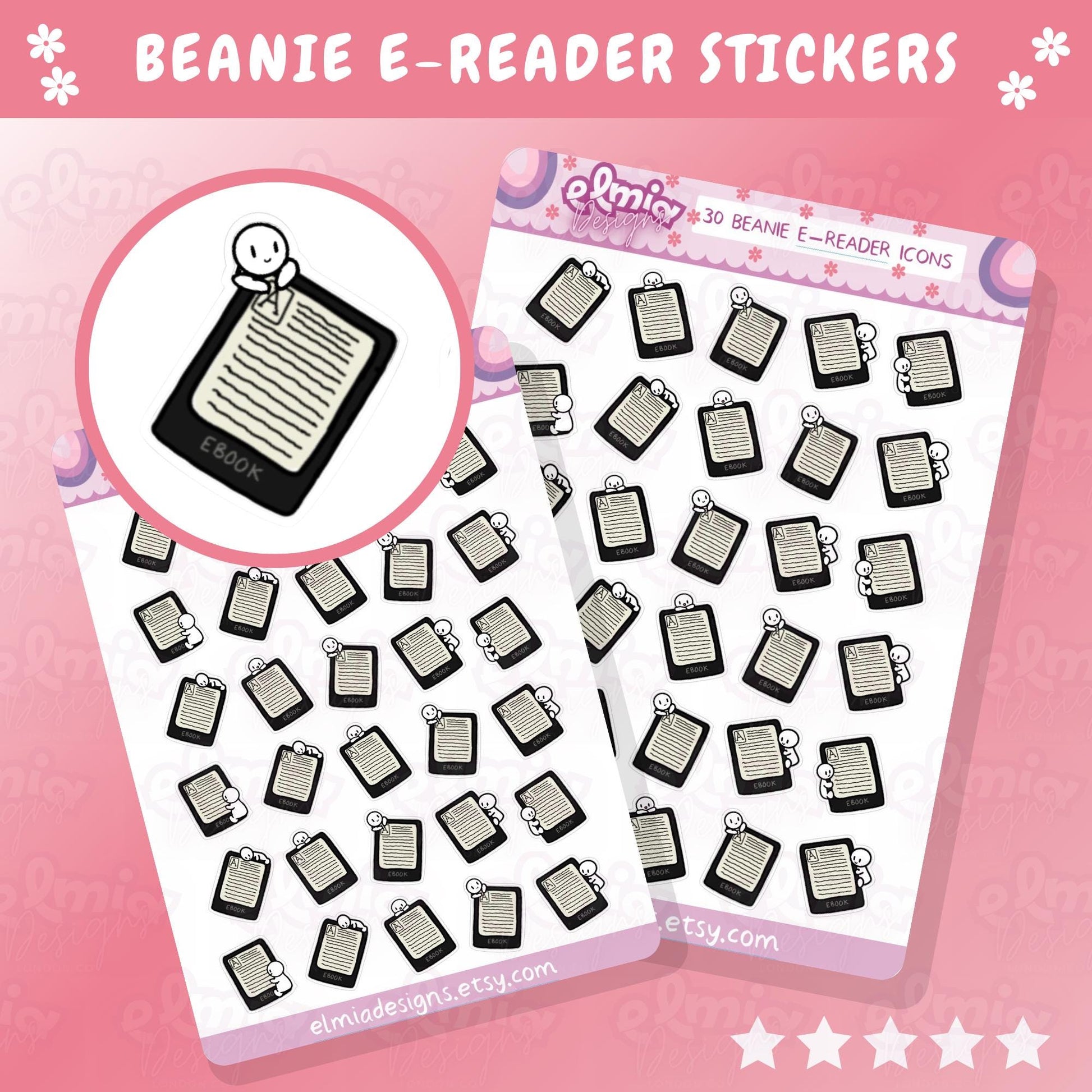 PRINTED Cute Neutral Beanie Character E-reader Kindle Reading Journal Planner Sticker Journaling Calendar BUJO Planning Kawaii book tracker